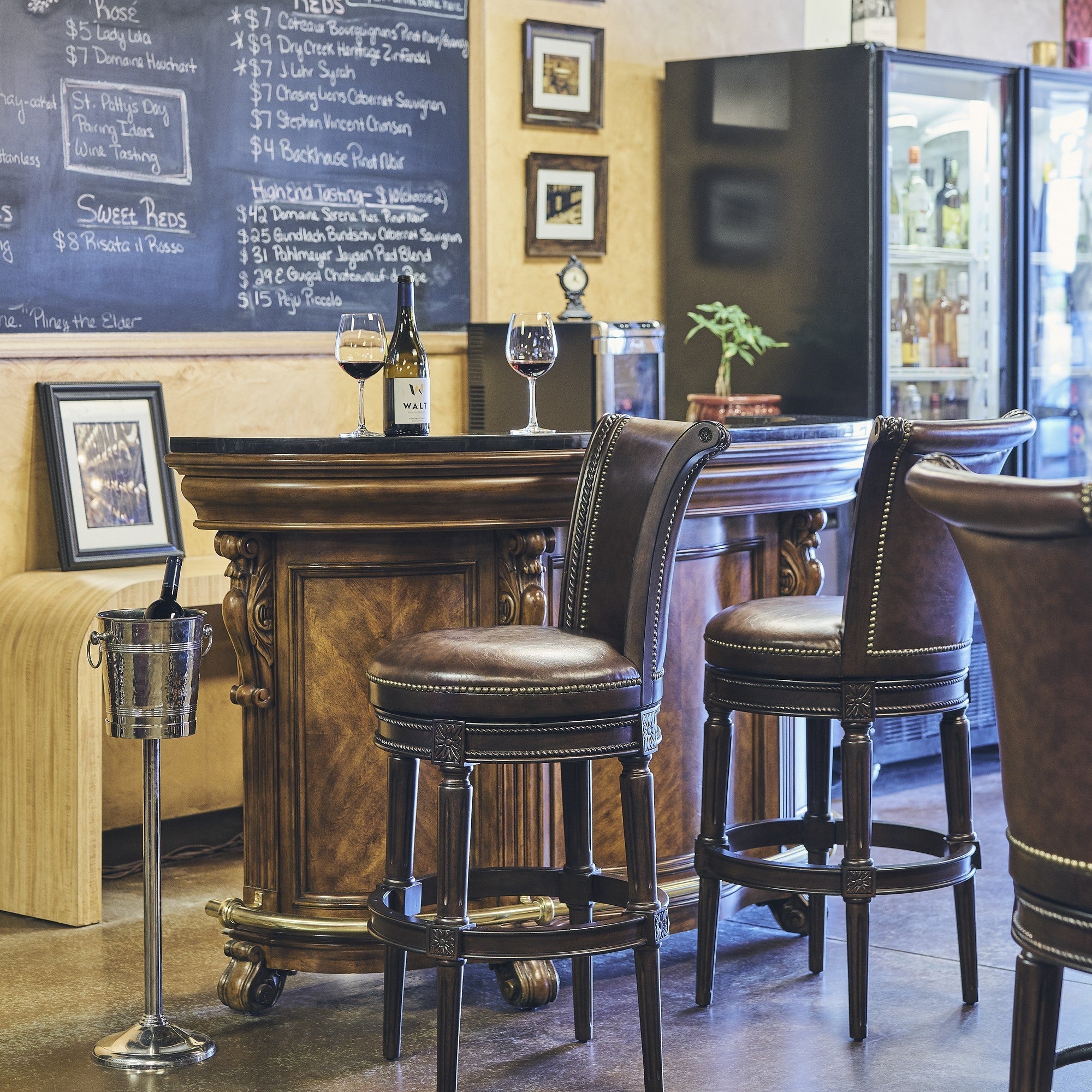 Stylized in either White or Pecan be sure to look at the beautiful design that is an amazing accent to any bar or kitchen.