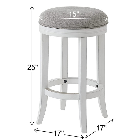 Avery Swivel Stool with Grey Fabric in White Finish