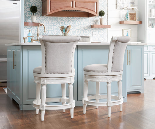 Chapman Swivel Barstool in Alabaster White with Grey Fabric